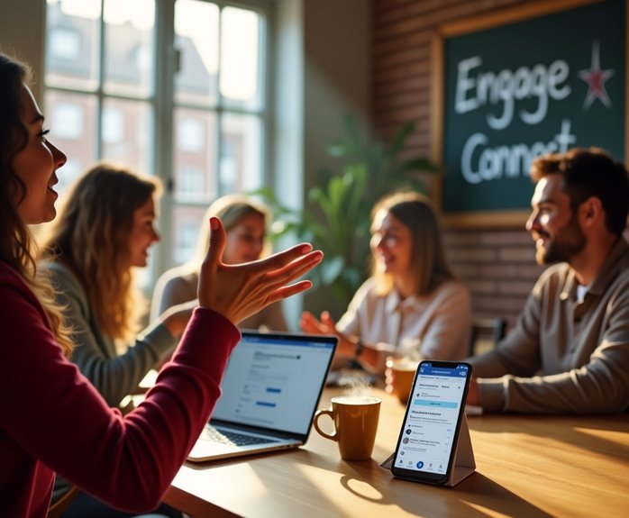 To grow your audience using Facebook Groups, begin by understanding your members through Facebook Insights to identify key demographics, like the 18-24 and 25-34 age groups. Craft a content strategy with a consistent posting schedule, utilizing polls, live sessions, and themed days to boost engagement. Encourage interaction by recognizing top contributors and welcoming new members with personalized posts. Promote your group across social media and collaborate with influencers for increased visibility. Regularly analyze engagement metrics and refine your strategies accordingly to maintain ideal activity levels. By implementing these techniques, you can effectively expand your audience and build a thriving community.