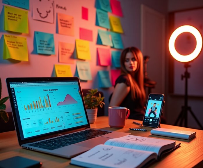 To kick off your TikTok challenge, start by diving into the world of successful past challenges. Analyze viral trends that gained considerable traction, and pay attention to their key elements. Look for metrics such as views, likes, and comments to measure what made these challenges popular. You'll likely notice patterns in the type of content that resonated, whether it was dance, comedy, or creative skills.